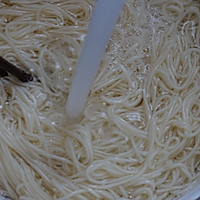 面条捞出迅速冲凉水,彻底冲透控水。