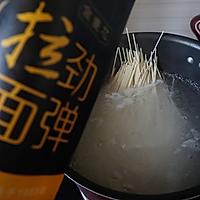 水开煮面条,水开后点下凉水再开基本就OK了。煮完面条接着把胡萝卜丝焯一下。