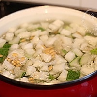 在锅中放入是冬瓜4倍左右的清水,熬煮10分钟。