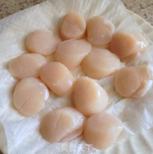 生吃专用的鲜贝用厨房纸吸干多余水分