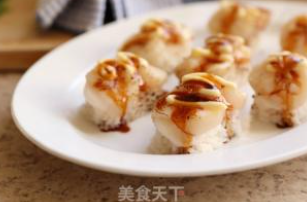 挤上沙拉酱,浇上几滴浓稠的烧鳗鱼汁