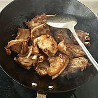 锅里放油。放糖不停搅拌。糖变黄时有点冒烟放入羊排。(羊排要控干水份)