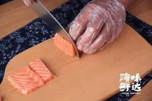 厚切的三文鱼可以扇形摆盘