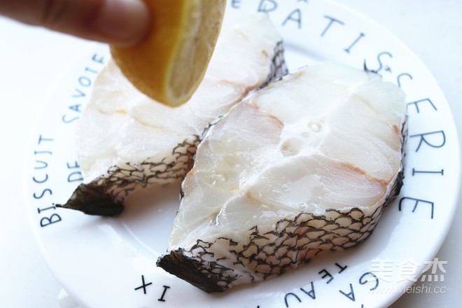 柠檬切半,鱼肉表面淋上柠檬汁,静置腌制20分钟。