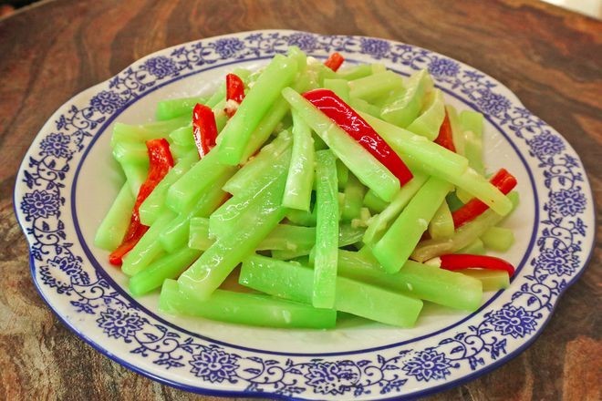 芦笋切掉老茎,洗净,剖成片状:红椒切片。