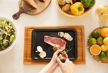 牛排回温:将牛排从冰箱取出,放置至室温。 调味:在牛排两面均匀撒上盐和黑胡椒。 热锅:将平底锅加热至高温。 煎牛排: 加入橄榄油,放入牛排。 煎至一面金黄,翻面继续煎另一面。 加入黄油和香料