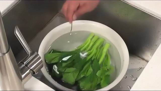 水煮沸后,将菜心放入锅中焯烫约1-2分钟,直到菜心变绿且熟透但仍保持脆嫩,然后迅速捞出。