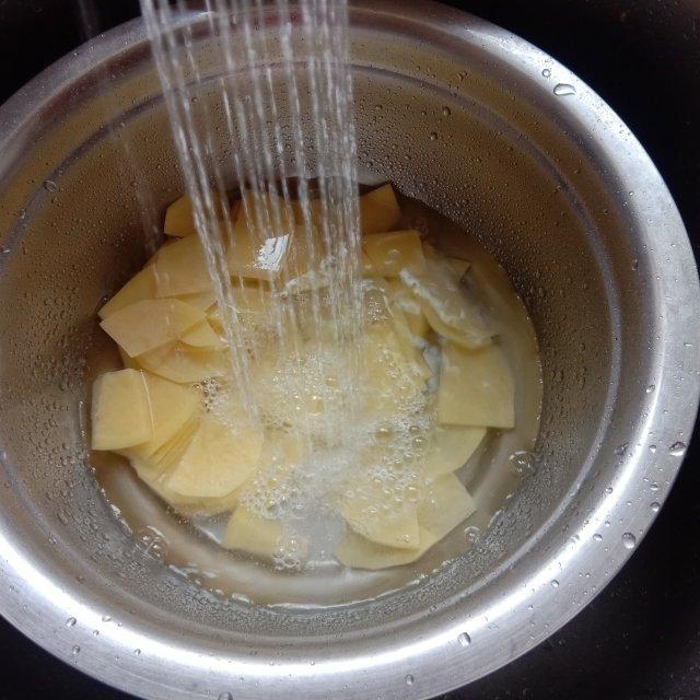 土豆去皮后切成细丝,可以用清水浸泡一下以防氧化变色,同时可以洗掉一些淀粉。将土豆丝放入沸水中焯烫约1-2分钟至断生,然后迅速捞出过冷水,以保持脆爽的口感。