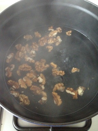 将核桃仁放到开水煮3分钟后捞出沥干备用