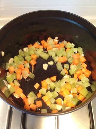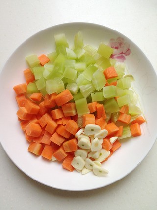 莴苣和胡萝卜切丁,大蒜切片