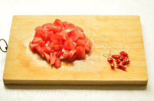 番茄、辣椒切小丁