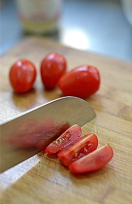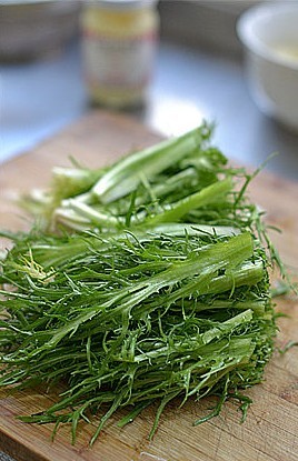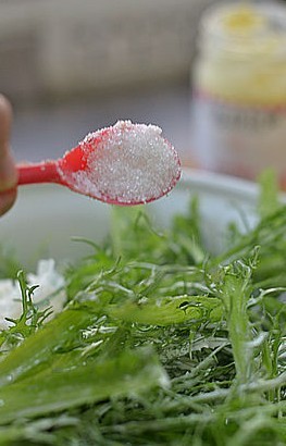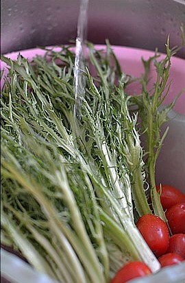 用水加半小勺盐把苦菊和小番茄泡15分钟