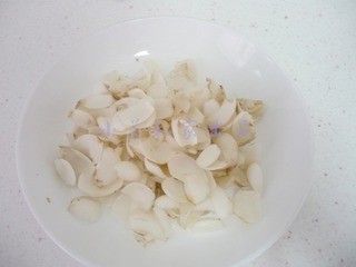 百合去根掰成一片片,洗净待用。(如果用干百合,就用温水泡发)