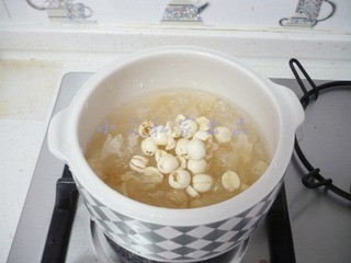 将银耳、莲子加入适量冷水,大火煮沸改小火煮约30分钟.
