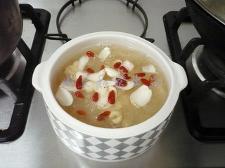 最后加入适量的冰糖、枸杞稍煮片刻即可。