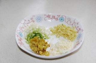 姜,蒜,葱,泡椒切成末