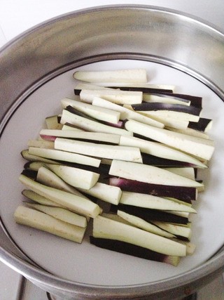 将茄子切条放到蒸锅中蒸熟
