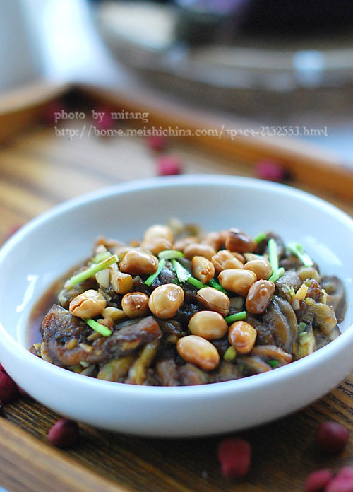 1、茄条蒸的火轻些,为了保持形状。 2、花生红衣用开水烫后,不必太长时间即可轻松去除。 3、加味极鲜是个人习惯,用生抽也可!