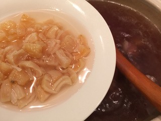 打开锅盖,把泡好的瑶柱连泡瑶柱的水放进锅里,盖上锅盖继续煲30分钟