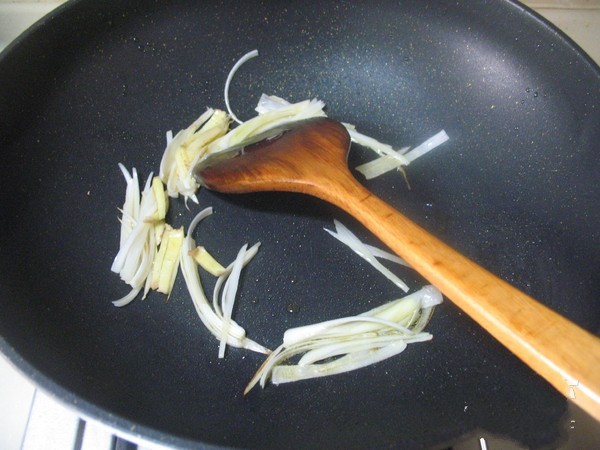 切好葱姜丝。将锅烧热,放入适量色拉油和少量香油,放入葱姜炝锅。
