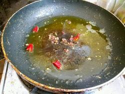 锅里放油加热把红辣椒和麻椒,爆香!