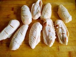鸡翅中洗净用刀在正反两面刮几个口子!
