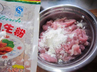 放好调味料及生粉后的肉片反复摔打几下,这样更容易入味,摔打后肉片和生粉搅在一起有粘手的感觉刚好。
