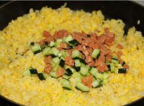 往里加火腿丁跟青瓜丁。