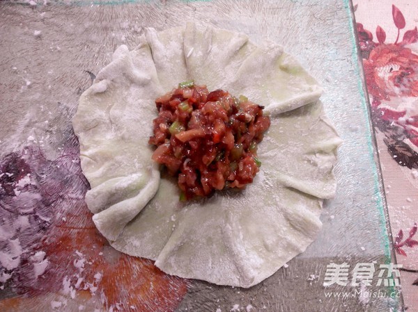 擀成带褶的圆形皮