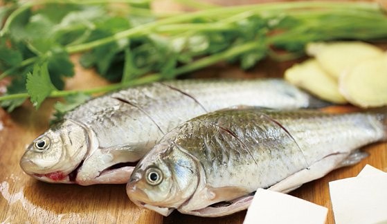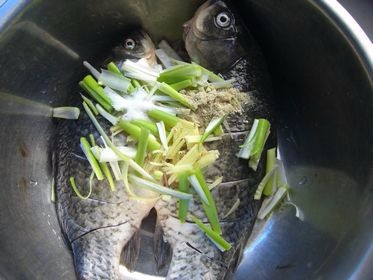白鲫魚,洗净,去鱼鳃、鱼鳞、肠脏。