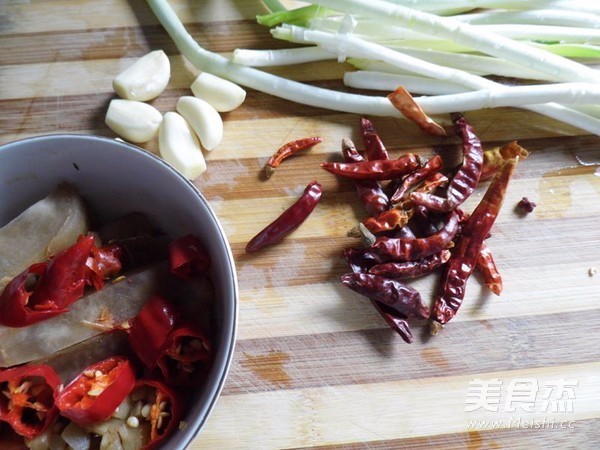 大葱切段、大蒜切片,泡椒、泡姜切末,大葱切段、大蒜切片,泡椒、泡姜切末。
