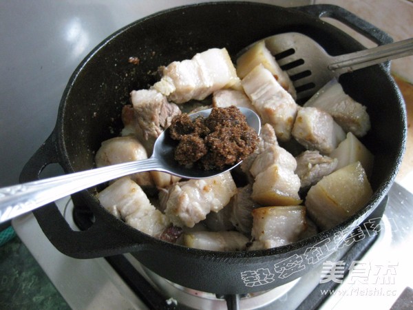 不放油直接将切好的肉块放进去干煸,一直到五花肉煸出油来
