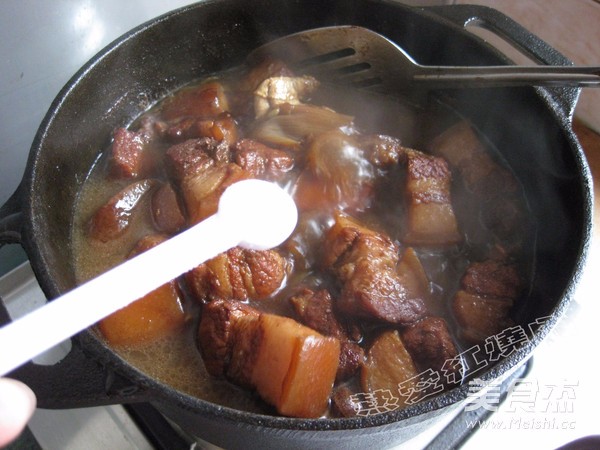 看到汤汁耗的差不多了就加入盐,再炖一会儿汤汁收的差不多就可以出锅了