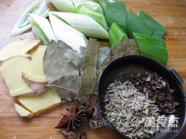 准备好葱姜,香叶,大料,花椒,小茴香(香料装在调料盒里面
