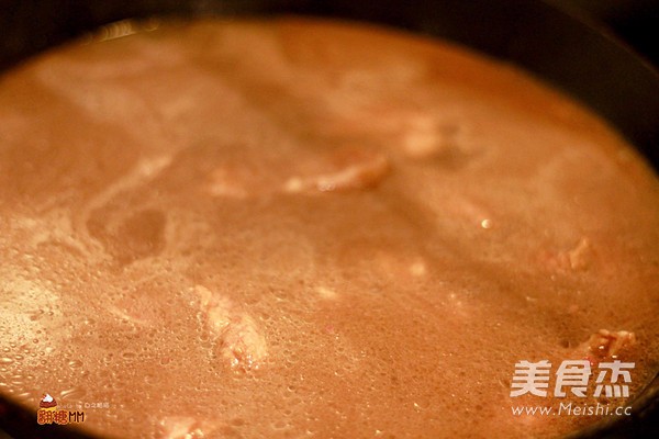 一定要收到汤汁干干的,最后的最后马上要干锅了。这时候会出来很多油,好像炸排骨一样,这时候排骨表面会脆脆的。果断这个时候出锅。锅中剩下的油就不要了,也算给排骨走油