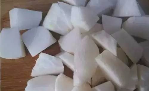 白萝卜洗净去皮切成滚刀块儿待用,块儿可大可小。