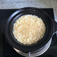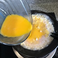 开中火,将蛋液倒入砂锅。