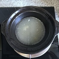 砂锅中加入高汤,高汤的量大约能没过笋丁多一点就行,没有高汤也可以用清水