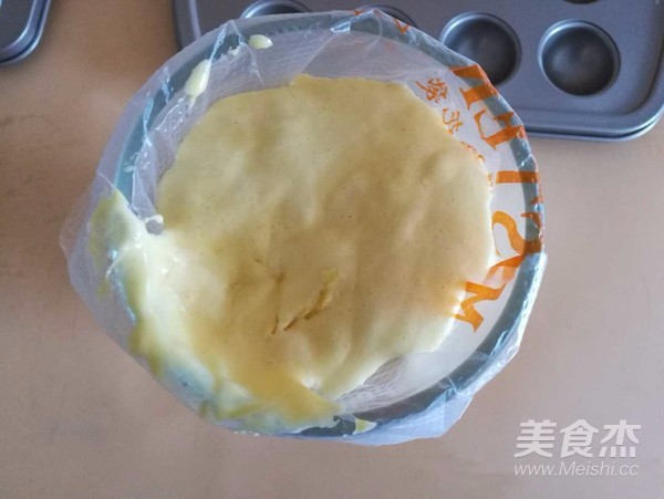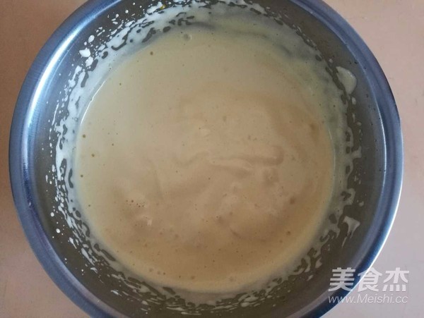 打发成浅白色有纹路就好了,全蛋打发会比蛋白打发慢,所以时间要长点