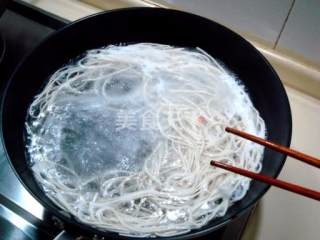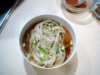 捞出面条放入事先勾兑好调料的汤面碗里,撒上少许香葱。