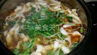 汤锅中加入适量的水烧开,下刀削面继续煮开。汤锅中加入适量的水烧开,下刀削面继续煮开。