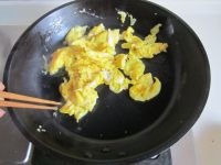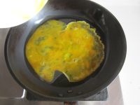 待蛋液微微煎至定型后用筷子搅打成小块, 盛出来备用