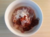 瘦肉切碎一点。加豆瓣酱,淀粉,料酒搅拌均匀腌制10分钟。