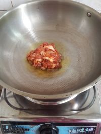 坐锅烧热放油,放腌制好的肉碎。滑散至变色后马上装出待用。