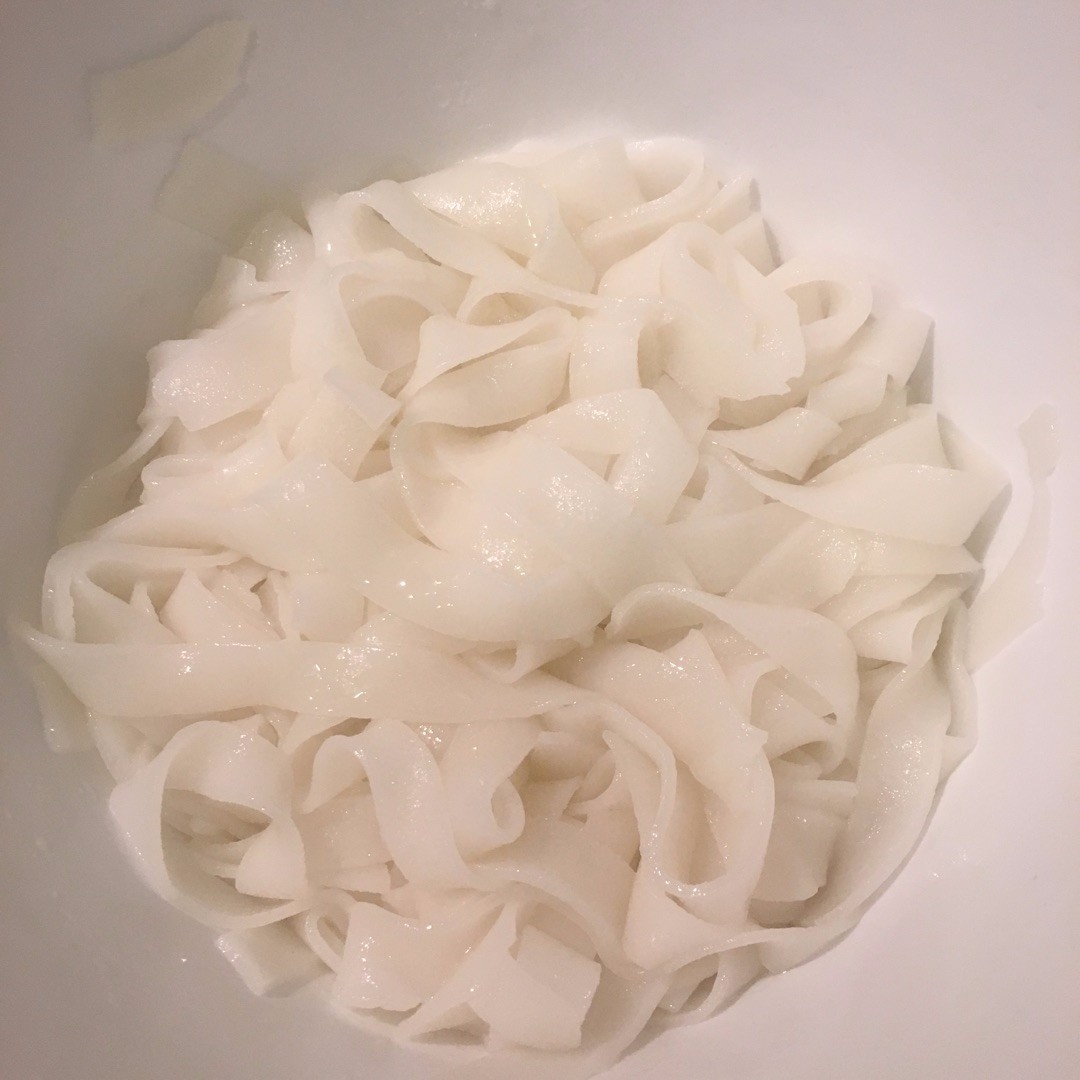 新鲜的沙河粉打散即可。放一勺油下去摇一下,避免粉再次粘连。