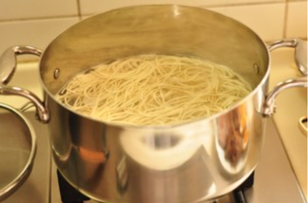 锅内烧开水,撒一把盐,下拉面