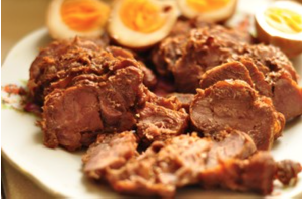 肉取出,冷藏后切片,尝一尝,味道刚刚好,而且肉质细嫩,还有筋在里面很好吃。