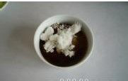 2、甜面酱加入一大勺白糖,一勺香油搅拌均匀备用。