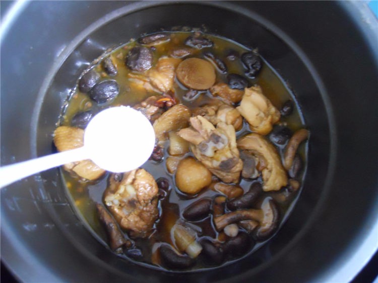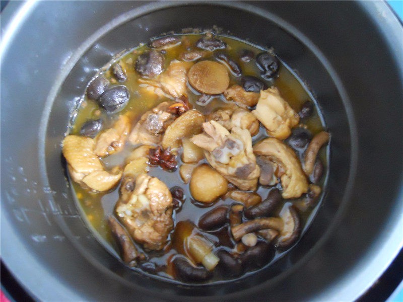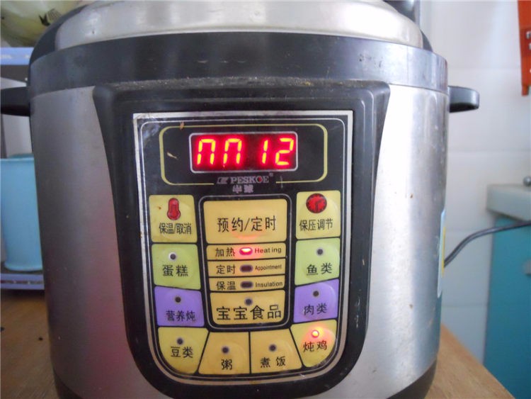 28.盖上高压锅盖,密封好,按鸡肉键。