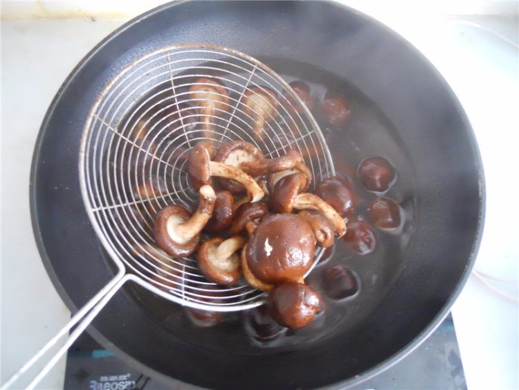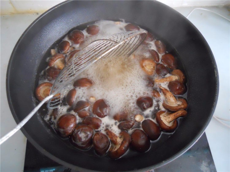 10.其间用笊篱将香菇翻动,使其均匀受热。